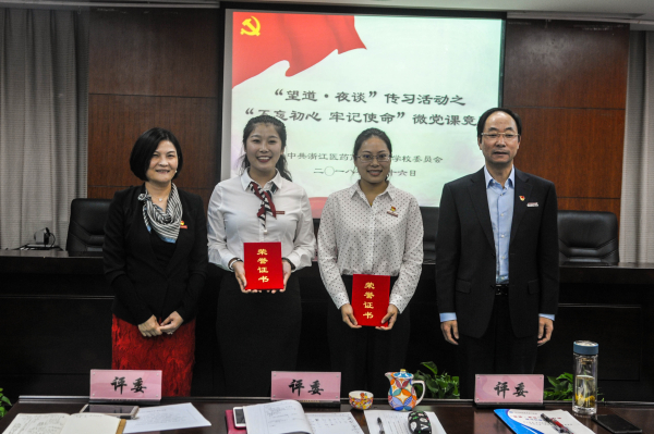 根据本次比赛规则,经现场评委组评分,最终,来自药学院党总支的王涛老师和来自中药学院党总支的姜雨辰老师获得一等奖,来自制药工程学院党总支的黎晶晶等5位老师获得二等奖,来自商学院党总支的柳飞等7位老师获得三等奖。学校领导班子成员对获奖者表示祝贺并分别为其颁奖。