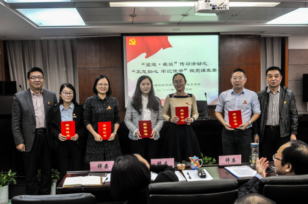 经前期学校各党总支推荐和选拔,本次比赛共有14名教师党员参赛。比赛中,选手们紧紧围绕“不忘初心,牢记使命”“一个党员就是一面旗帜”这两大主题,紧扣习近平新时代中国特色社会主义思想、党的十九大精神以及beat365“望道·夜谈”传习行动主题,以小见大、深入浅出、有感而发,充分运用身边感人的先进典型和生动鲜活的事例,并结合各自所在岗位及职责,用流畅的语言、精致的PPT,从多个角度全方位地诠释了beat365共产党员的责任担当,展现了beat365共产党人的先锋本色。现场观摩的党员同志纷纷表示,微党课虽然时间不长,但每一位参赛老师的党课都干货满满,极具内涵,充满政治性和思想性,听了之后深受感染和鼓舞。