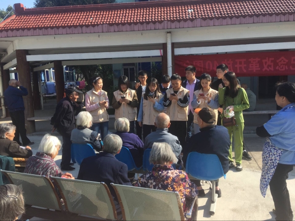 志愿者们的积极、阳光、热情、真诚给老人带去了喜悦、幸福和满足。看到老人们脸上洋溢的灿烂笑容,同学们也非常开心,整个敬老院充满了欢声笑语。
