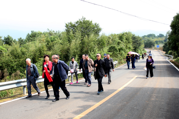 第一站前往宁海许家山石头村,当地保存有浙东沿海典型的山地石屋建筑群落,老教师们漫步在大自然的清新空气中,感受当地传统的生活方式,观看捣年糕,做竹编等。第二站前往宁海“兴宁廊桥”,老同志们领略着乡间美景,谈笑风声,拍照留念。午餐后,前往第三站宁海跳头村桔子基地采摘桔子,享受田园乐趣。