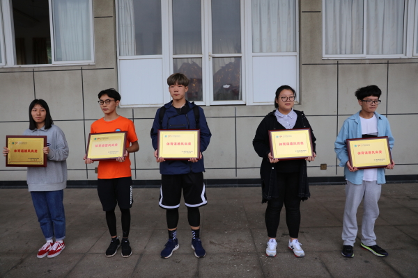 大会总裁判长张伟老师宣布本次运动会竞赛成绩,许莉勇宣布了获得“体育道德风尚奖”的评选结果。随后进行颁奖仪式,由校领导为各获奖代表队颁奖。