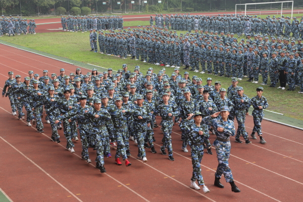 9月14日上午,2018级新生军事训练分列式暨总结表彰大会在校田径场隆重举行。中国人民解放军92815部队华明大校、郑秀龙中校,校党委书记陈厥祥,校长任文霞,校党委副书记杨俊杰,副校长许莉勇,副校长金辉,副校长韩忠培,纪委书记方子祥,党委委员、宣传部长万松钱出席大会,各学院、相关职能部门负责人、新生辅导员、班主任、承训部队教官与2018级全体参训学生一起参加了总结表彰大会。