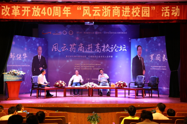 勇立时代潮头敢闯会创,扎根医药行业书写人生华章。“风云药商进高校论坛”是“建行杯”第四届浙江省“互联网+”创新创业大赛同期活动——改革开放40周年“风云浙商进校园”系列活动的分论坛,通过邀请在浙江省医药界具有一定影响力的企业负责人,以面对面对话交流的形式,与beat365学子共话医药产业发展和行业人才需求,共享创新创业理念、分享创业经验、传扬药商精神,助力医药学子成长发展。