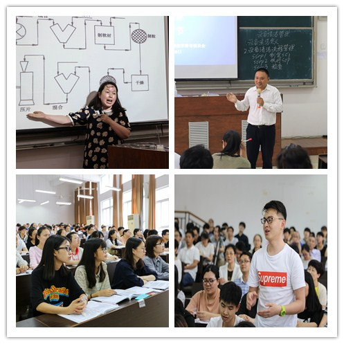 制药工程学院计竹娃老师在《药物制剂工艺与制备2》“片剂的制备”章节教学中采用基于慕课的翻转课堂教学模式,学生完成线上学习后,师生在线下课堂通过实景操作、案例分析对重难点知识进行学习研讨,掌握软材、湿颗粒制备过程的关键步骤和操作难点。教师在教学中充分运用现场操作、Flash动画、企业生产操作录像等方式引导学生明确药品生产过程中的关键质量控制点,切实增强严谨规范、精益求精的制药质量意识。商学院屠冰老师《GMP实施与管理》“设备清洁管理”一课从甲氨蝶呤药害事件导入,引起学生对设备清洁安全隐患的高度重视,随后采用视频教学、模拟检查等方式,构建合作学习、师生互动的课堂。教师将自己长期担任GMP检查员的丰富实战经验运用于课堂教学,有效培养学生编制设备清洁规程和检查判断能力,提高了质量管理意识。