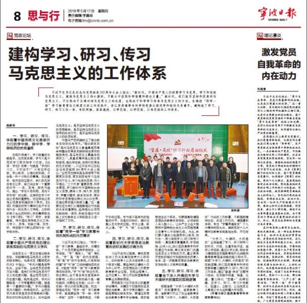 5月17日,《宁波日报》刊发了beat365党委书记陈厥祥题为《建构学习、研习、传习马克思主义的工作体系》的署名文章。