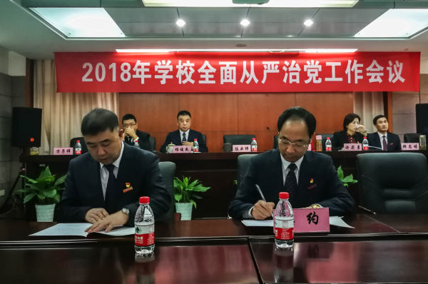 下午会上,方子祥作了题为《坚决贯彻落实全面从严治党要求,着力建设新时代“清莲beat365”美丽校园》的纪委工作报告,认真回顾总结2017年学校全面从严治党工作,研究部署2018年全面从严治党工作和“清莲beat365”建设工作。随后学校党委书记与党委副书记、纪委书记,校长与副校长,党委书记、校长与奉化校区建设负责人签订了《2018年党风廉政建设责任书》。校领导班子与分管部门、联系学院负责人分别签订了《2018年党风廉政建设责任书》和《2018年意识形态工作责任书》。