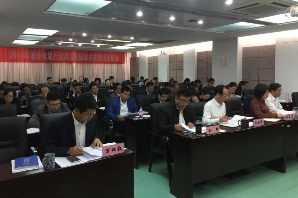 上午会上,陈厥祥代表党委作了题为《奋力推动全面从严治党向基层延伸,为高质量达成扩校升本创一流目标提供坚强保障》的讲话。全校17家单位负责人和7个二级学院党总支负责人围绕2017年度履行党风廉政建设主体责任和执行廉政责任书情况、部门及所含各岗位廉政风险排查情况、防范和化解廉政风险举措及办法等三方面作了述职报告。陈厥祥用“五个好”“五个强”“五个有”进行集中点评,既肯定成绩,也分析形势,指出问题,并提出了明确指导改进意见。