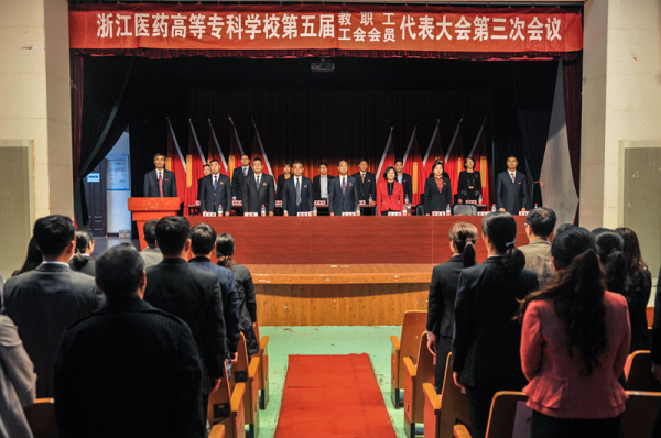 4月13日,浙江医药高等专科学校第五届教职工代表暨工会会员代表大会第三次会议在学校学生活动中心报告厅成功召开。校党委书记陈厥祥、校长任文霞、校党委副书记杨俊杰、副校长许莉勇、金辉、副校长、工会主席韩忠培、纪委书记方子祥、党委委员、宣传部长万松钱等出席会议,110名正式代表和列席代表参加会议。大会分四个阶段进行,陈厥祥主持第三阶段会议,杨俊杰和韩忠培分别主持第一和第四阶段会议。