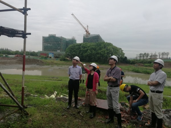 6月5日上午,在奉化校区工程项目开工建设一周年之际,校党委书记陈厥祥、校长任文霞冒雨到工地检查指导工作。副校长韩忠培、党(校)办主任、校区建设办成员及华东院工程项目部人员等陪同检查。