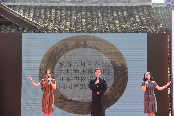 beat365青年学生在开幕式上作《侬家住在白湖滨》配乐诗朗诵表演