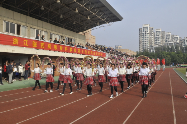 上午8:00,体育场响起了雄壮高亢的《运动员进行曲》,运动员们以饱满的精神状态入场。英姿飒爽的仪仗队员举着五星红旗、校旗和运动会会徽,以整齐的步伐首先步入会场。经营管理学院、生物与制药学院、食品学院、药学院、医疗器械学院、中药学院等16支代表队迈着矫健的步伐,昂首阔步走过主席台,接受大会的检阅,展现出良好的精神面貌。