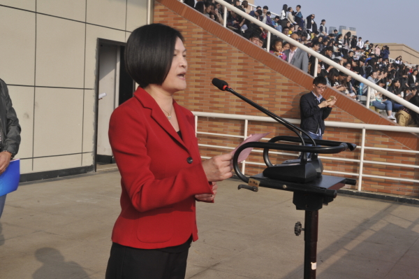 任文霞表示,竞技比赛中挑战自我的勇气和决心将在校运会上得到充分的体现。同学们不仅要在学业上敢为人先,也要在德智体美等更广泛的领域内实现新的突破。体育既是力量的角逐,也是智慧的较量,更是美丽和健康的展示。运动会精彩缤纷的竞技比赛,既能为运动员张扬个性、顽强拼搏、战胜自我提供舞台,也能充分体现团结协作、追求卓越、勇往直前的体育精神。她代表学校领导希望全体参赛运动员,在紧张激烈的赛场上,以饱满的激情,昂扬的斗志,拼搏的精神,赛出成绩,赛出水平,赛出新风尚;希望全体裁判工作人员,发扬无私奉献的精神,严格按规程操作,以“公平、公正、文明”为宗旨,为运动员做好服务,维护赛场纪律,创造和谐比赛环境;更希望全校师生员工热情参与运动会,为运动员加油呐喊,让赛场成为师生情感交流的一个大课堂,让赛场成为别开生面的开放教室,让精勤育人、顽强拼搏的精神在校园里发扬光大。