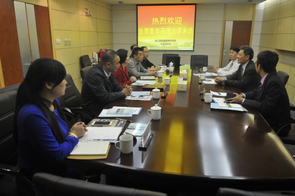 杨俊杰介绍了学校的基本情况,以及学校近期的发展目标与规划,并就两校当前的合作内容与方式提出了具体建议。陈健民介绍了嘉南药大的发展历史与办学现状,以及学校两岸合作与交流的基本情况、主要做法和成功经验,表达了校际之间紧密合作、共同发展的愿望。双方就师生交流、、学分互认、教学与科研合作、文化互动等深入进行了交流。