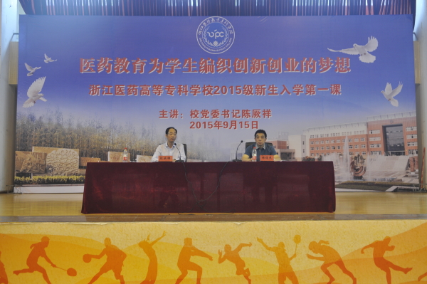 大学是每个青年梦想开始的地方!”9月15日上午,浙江医药高等专科学校偌大的体育馆座无虚席,2700多名2015级新生迎来了他们入学后的第一堂始业教育课,给他们上课的老师是校党委书记陈厥祥。陈书记以自己30年的大学工作经历和人生经验,围绕《医药教育为学生编织创新创业的梦想》的主题,循循善诱,语重心长,为在座的全体新生打开了一扇亦真亦幻的大学之门,指明了一条求真向善的大学之路,阐明了一管知行合一的大学之道。校党委副书记杨俊杰主持新生第一课。学生处负责人、各学院院长、总支书记(副书记)、全体辅导员、新生班主任也参加此次新生始业教育。上篇:亦真亦幻的大学之门
