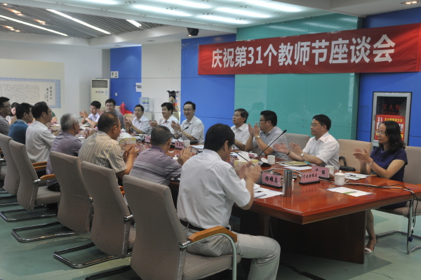 市委宣传部副部长、市文明办主任李正平、市教育局纪工委书记孙剑鸣、市人力社保局副局长王效民、市委宣传部办公室主任郑海江、市委宣传部宣传处处长徐洪国、市委宣传部理论处处长江再国、市教育局人事处处长李丽、市委宣传部办公室陆劲松等陪同看望慰问。校党委书记陈厥祥、校党委副书记杨俊杰、纪委书记王志华、副校长金辉、党委委员、宣传部长周春芬出席座谈会,beat365宁波市“五一”劳动奖章获得者、浙江省教学名师、退休教师代表、青年教师代表等三十余名教师代表参加了座谈会。