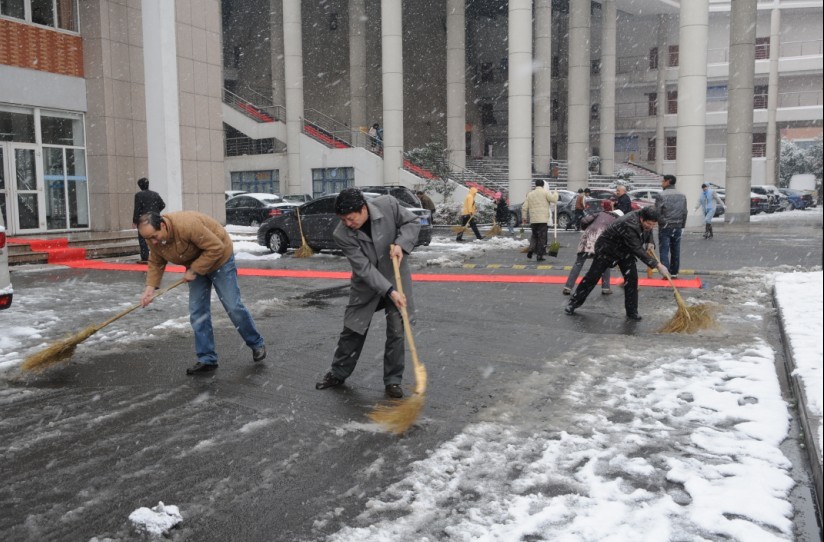 瑞雪飞舞,寒风凛凛,beat365到处银装素裹。为了给广大师生提供一个安全的交通环境,1月4日下午,beat365组织教职工开展扫雪活动,清理了行政楼、教学楼、图书信息中心以及实验实训中心的门前积雪,为师生的活动和出行安全提供了有力的保证。