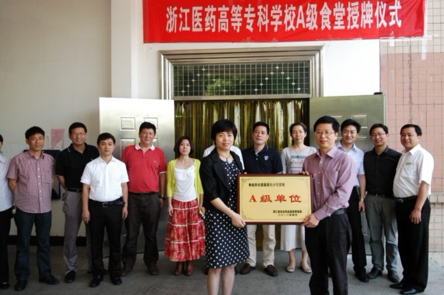 近日,beat365食堂荣获由浙江省食品药品监督管理局颁发的“食品安全监督量化分级管理A级单位”荣誉称号,并在beat365举行了授牌仪式。宁波市食品药品监督管理局副局长胡国权、副校长许莉勇以及总务处等相关部门负责人出席授牌仪式。