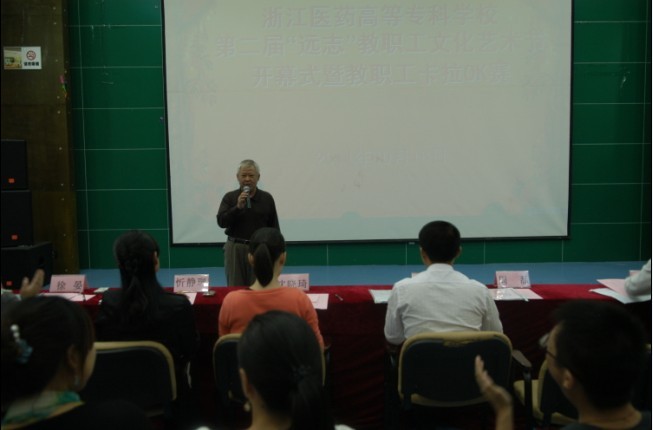 10月18日下午,浙江医药高等专科学校第二届“远志”教职工文化艺术节开幕式暨校园十大歌手卡拉OK赛在活动中心影视厅隆重举行。校纪委书记、工会主席王志华致开幕词并宣布艺术节开幕,校工会委员、各分工会主席(副主席)、委员及部分教职工参加了开幕式并为卡拉OK赛助兴,校工会副主席史志超主持开幕式暨卡拉OK比赛。