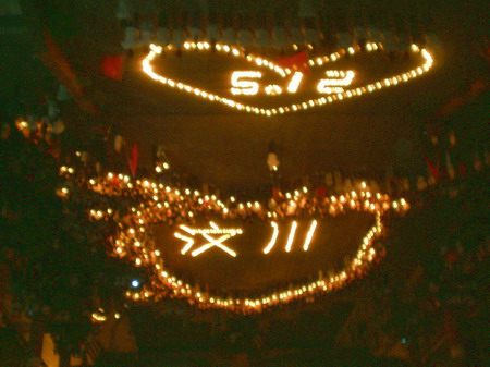 最后,烛光伴着泪光,在场所有同学为四川汶川大地震遇难者默哀祈祷,祝愿他们在另一个世界得到安宁;向那些失去居所的同胞们祈祷,祝愿他们早日重建家园;向那些在此次灾祸中失去亲人的人们祈福,愿他们化悲痛为力量,挫折过后变得更勇敢;向我们伟大的祖国祈福,祝福她经过了种种的磨难之后,能迎来美好的明天!(校团委)