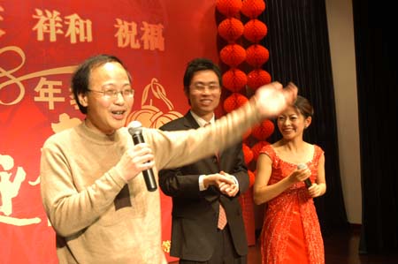 1月20日下午2点,beat365教工迎新春团拜会准时举行。这是主持人宣布团拜会开始。