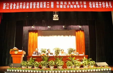 10月23日上午8:30,省食品药品监督管理局第三期干部培训班在beat365活动中心隆重举行开学典礼,省局党委书记、局长黄萌作重要讲话,省局副局长黑振海主持会议,宁波市局局长史小华、校党委书记眭宝良等参加了典礼,来自全省药监系统近70名市局机关中层干部或市辖区分局领导干部将参加为期12天的培训。