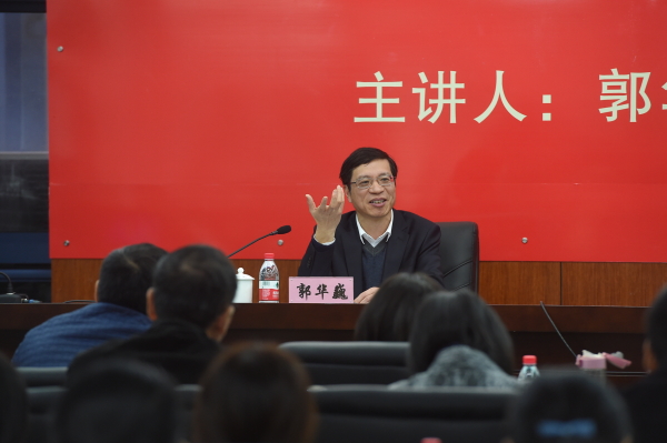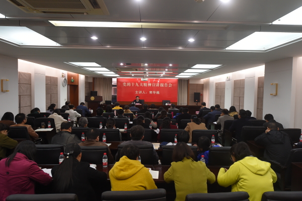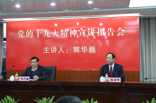 郭华巍围绕党的十九大的主题和主要成果、习近平新时代中国特色社会主义思想等方面,对党的十九大精神进行了系统全面的阐释和深入浅出的讲解。他指出,党的十九大是中国共产党历史上的一次重要会议,具有划时代的里程碑意义,它对党的历史的重大贡献,必将载入到中国共产党的光辉史册,对实现“两个一百年”奋斗目标、实现中华民族伟大复兴的中国梦是一座光耀千秋的奠基石。习近平总书记在党的十九大上的报告举旗定向,指路领航,深刻阐述了新时代、新矛盾、新思想、新方略、新征程、新部署、新任务,我们全体党员领导干部务必要反复学、深入学、全面学。