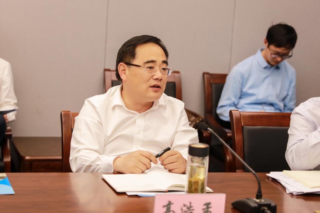 5月9日下午,奉化区委书记高浩孟,区委副书记、政法委书记陈红伟,副区长陈彩凤,区府办主任竺剑虹,区府办副主任、政研室主任宋炳林,区府办副主任、督查考核室主任王刚,区府办副主任竺月飞,区教育局局长周永龙,区城投集团负责人孙红光,萧王庙街道党工委书记陈横栩等一行人来访beat365奉化校区。校党委书记陈厥祥,校长任文霞,副校长杨俊杰,副校长韩忠培,校纪委书记方子祥,副校长罗文华,工会主席金辉等校领导热情接待了高浩孟一行,并在学校奉化校区行政楼二楼会议室开展交流座谈。