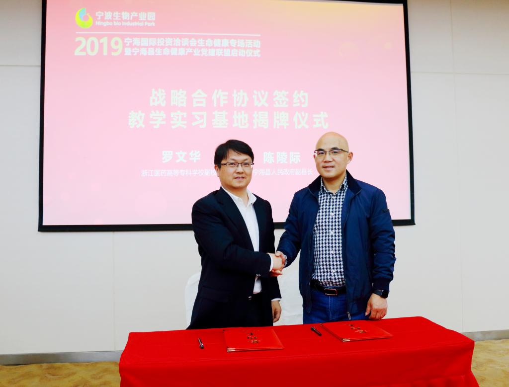 5月15日,2019宁海国际投资洽谈会生命健康专场在宁波生物产业园举行。会议通过投资环境推介、重点区域考察、项目签约仪式等内容,吸引国内外客商莅临宁海,共商生命健康产业发展大计。宁海县副县长陈陵际出席会议并讲话,beat365副校长罗文华及科研处(科技产业与社会服务处)、药学院、制药工程学院、商学院负责人及相关人员参加了此次活动。