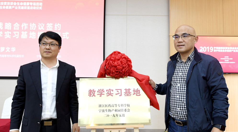 本次大会上,罗文华和陈陵际分别代表双方签订了战略合作协议,共同为“宁波生物产业园教学实习基地”揭牌。双方将围绕建立应用型人才定向培养机制、探索建立实践教学机制和模式、共建产学研平台及成果转移转化机制等方面开展全方位多层次的全面合作。不断拓展双方合作领域,积极推动园区与学校的良好合作关系向纵深发展,努力开创园区与学校政产学研合作的新局面,实现人才培养、科学研究和提升园区企业发展后劲的多赢。