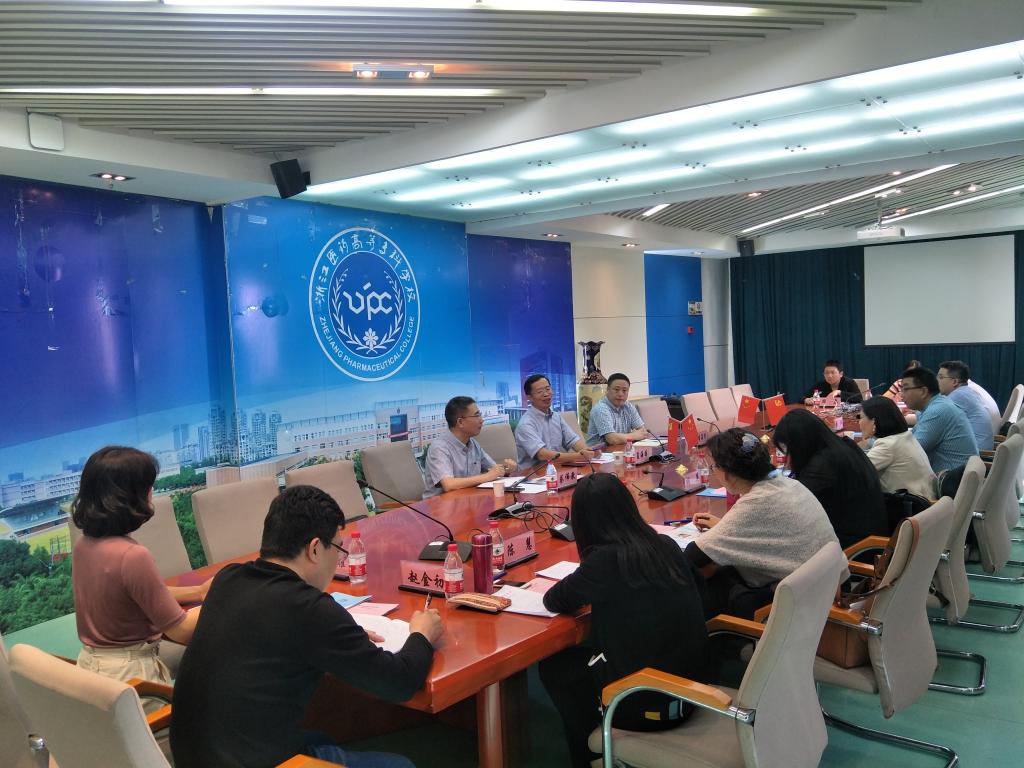 5月21日下午,丽水市市场监督管理局局长夏海国、副局长李泉清、人事教育处处长蔡伟教等一行来校商讨干部教育培训事宜。校长任文霞、分管校领导、校工会主席金辉热情接待了对方。药学院、计划财务处、总务处、继续教育学院负责人及相关人员参加了洽谈。
