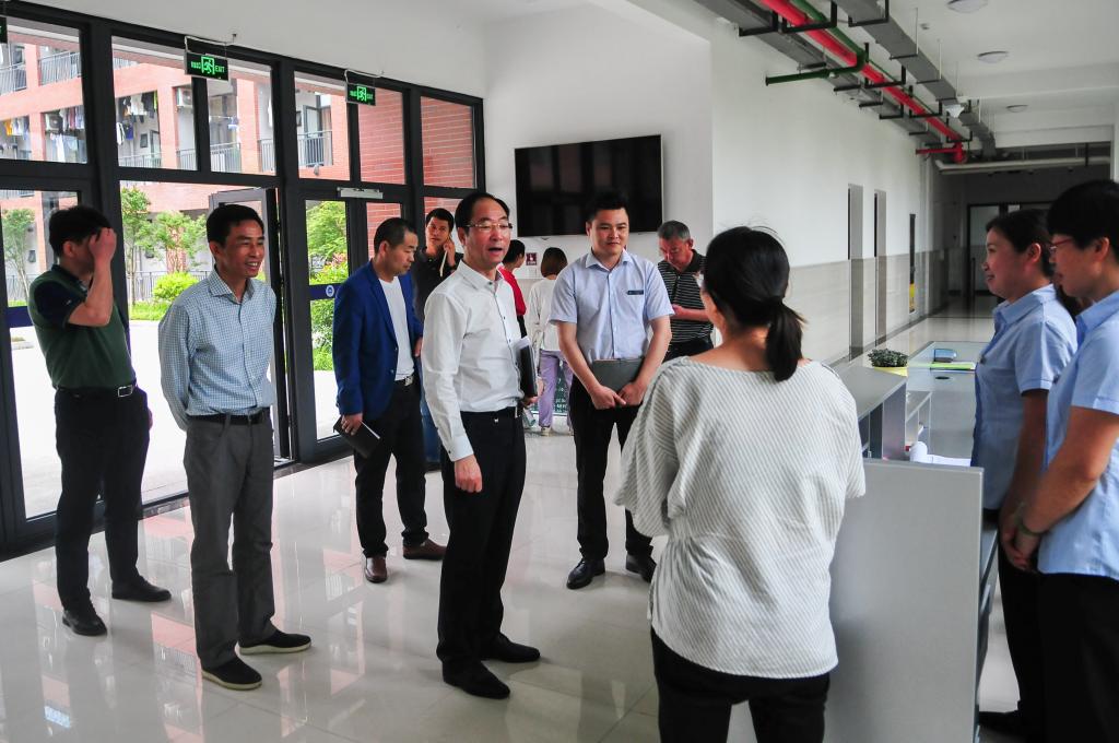 陈厥祥一行首先来到学生宿舍楼,对亚太物业工作人员的辛勤付出表示了感谢,他要求宿舍管理员要做好宿舍晚归学生的登记和引导工作,并提醒同学们注意宿舍防盗、用电等安全,多为同学们解决实际困难,从整体上提高服务水平和服务质量。在学校超市,陈厥祥要求超市出售的产品品质以及定价一定要符合相关规定要求,确保给学校师生员工提供物美价廉的产品。在学校食堂,陈厥祥走访了一楼师苑食堂后厨和二楼新宇餐厅,他要求食堂的工作人员们要加强食品安全意识,进一步提高服务态度和质量,加强食品卫生安全管理,并虚心听取师生的意见建议,加强创新,丰富食堂饭菜品种。