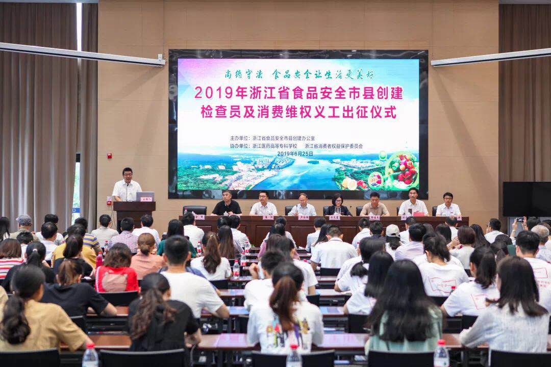 6月25日,浙江省食品安全市县创建检查员暨消费维权义工出征仪式在beat365奉化校区行政楼111会议室隆重举行。省食品安全市县创建办公室副主任、省市场监督管理局副局长卢永福、省市场监督管理局食品安全协调处副处长潘欣、宁波市市场监督管理局副局长邵俊杰出席出征仪式。校长任文霞、副校长韩忠培、纪委书记方子祥、副校长罗文华、校工会主席金辉以及来自省消费者保护协会的消费维权义工、浙江省食品安全市县创建工作的检查员、师生代表共计一百余人参加出征仪式。出征仪式由金辉主持。