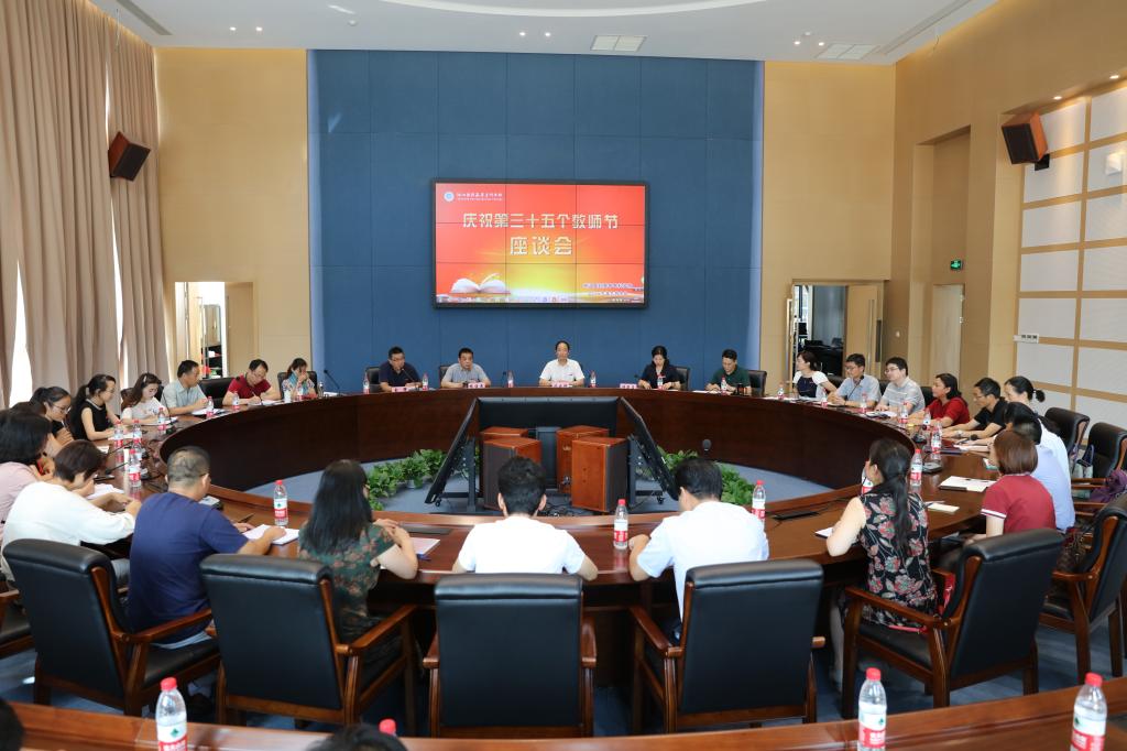 9月10日下午,学校在奉化校区举行庆祝第三十五个教师节座谈会。校党委书记陈厥祥、副校长杨俊杰、校党委副书记许莉勇、校工会主席金辉、各先进集体、先进个人代表、部分教师代表、以及相关职能部门负责人参加座谈会。座谈会由金辉主持。