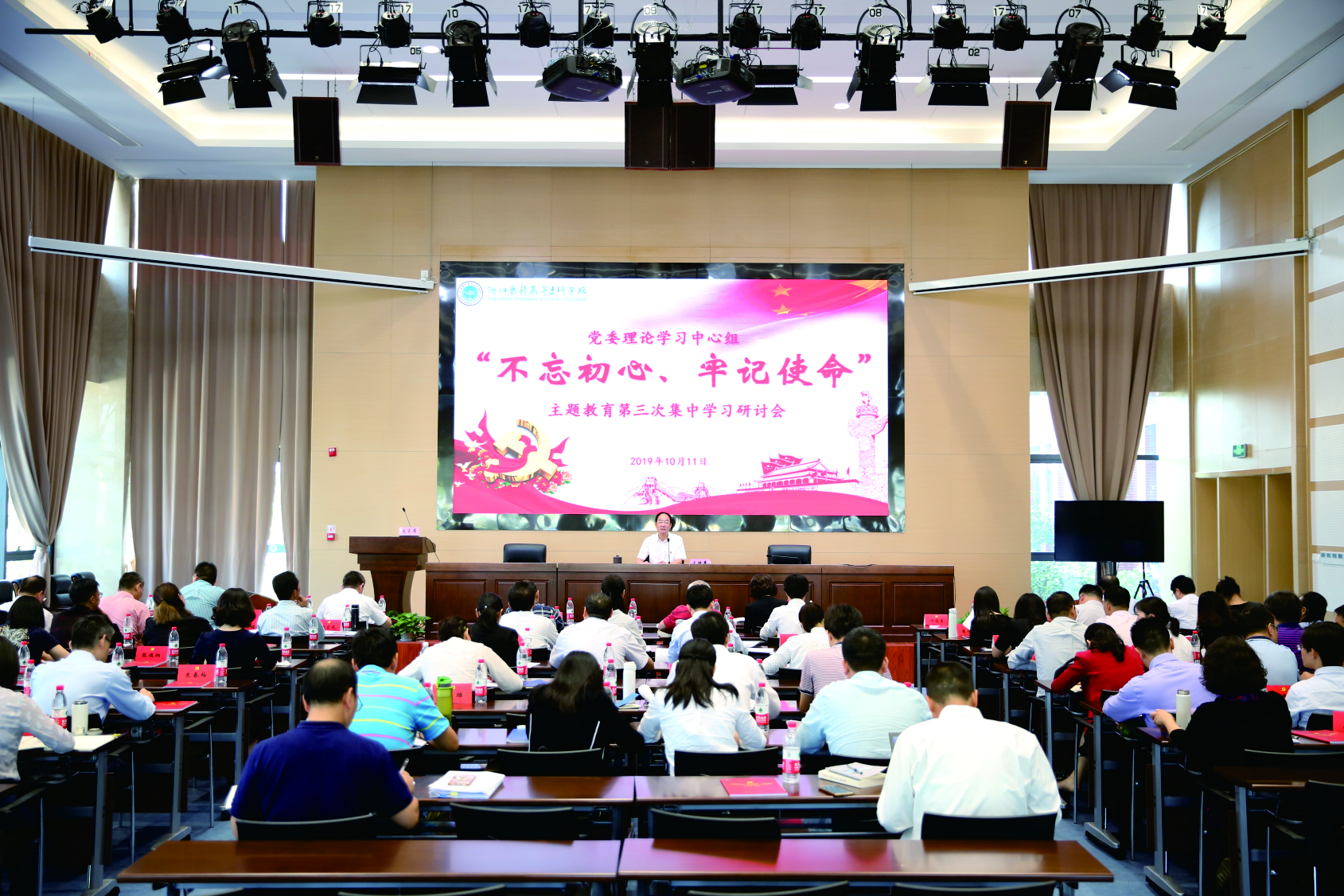 根据省委和宁波市委关于“不忘初心、牢记使命”主题教育的统一部署,按照《浙江医药高等专科学校党委理论学习中心组“不忘初心、牢记使命”主题教育集中学习研讨方案》要求,10月11日上午,学校在奉化校区行政楼111会议室召开了“不忘初心、牢记使命”主题教育第三次集中学习研讨会。本次学习研讨会分为“理想信念、宗旨性质”两个专题。校理论中心组成员、全校中层干部、党总支书记(副书记)、党支部书记、退休老同志代表参加学习研讨会。