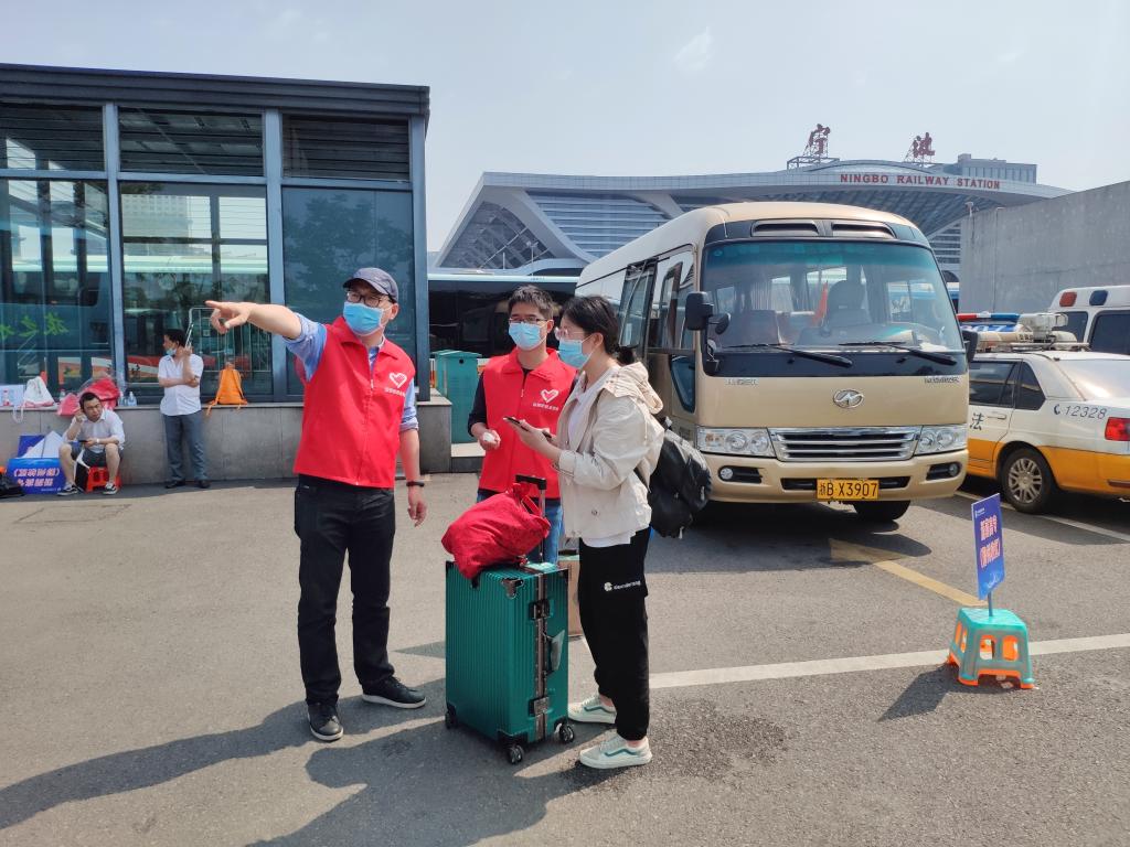 在两校区学校大门口,同学们有序排队等待、自觉出示甬行码、接收红外测温;在机场、火车站、汽车站接送点,志愿者为学生们逐一测量体温,指引学生登上接驳车,并帮助同学搬运行李;在两校区食堂,后勤等相关工作人员引导学生在指定食堂楼层就餐,同学们统一朝向有序就餐……开学首日各部门密切配合,通力合作,返校工作井然有序。