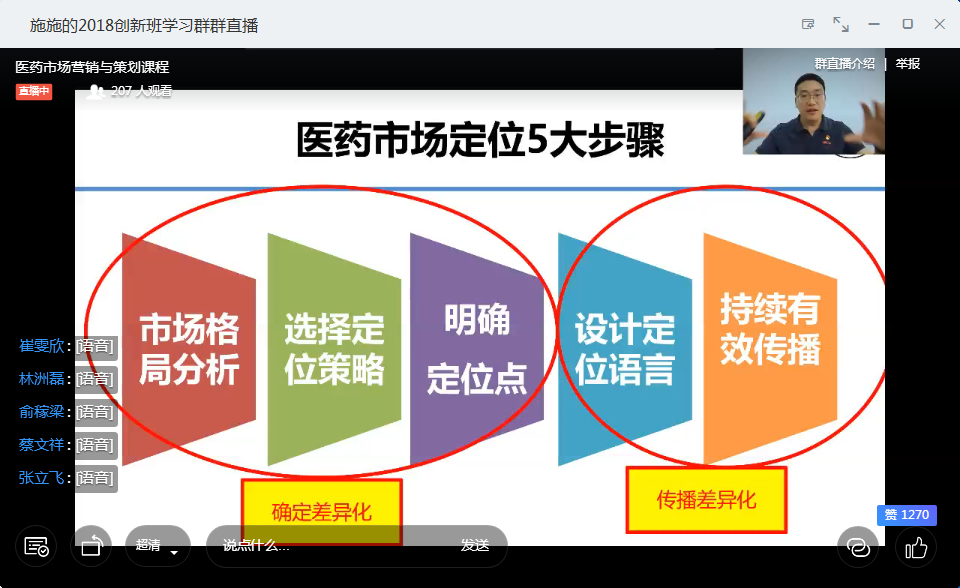 中药学院陶倩老师以及商学院施能进老师先后开讲,各具特色。陶倩老师的《识别周边的唇形科药用植物》从当下新冠肺炎明星处方“清肺排毒汤”中的两味药材谈起,通过播放相关植物视频,引导同学们进行研讨、辨认、学习,不失为一堂创意十足的线上实验课;施能进老师的《医药市场定位——赢得医患者的心智之战》从熟知的保健药物作为案例引入,通过丰富的案例素材阐述了医药市场定位的五大步骤,为听课师生上了一堂深入浅出而又极富感染力的市场营销课。在评课环节中,两位担纲授课教师首先阐述了自己的备课思路和教学反思,校内督导花慧老师和吴锦老师分别结合两节课的专业教学特点进行了点评和剖析。来自宁波卫生职业技术学院的朱晓卓教授从线上教学革命究竟改变了什么?如何提高线上教学的课程质量及如何提高线上教学的课程吸引力等三个方面对本次公开课作了精彩点评。