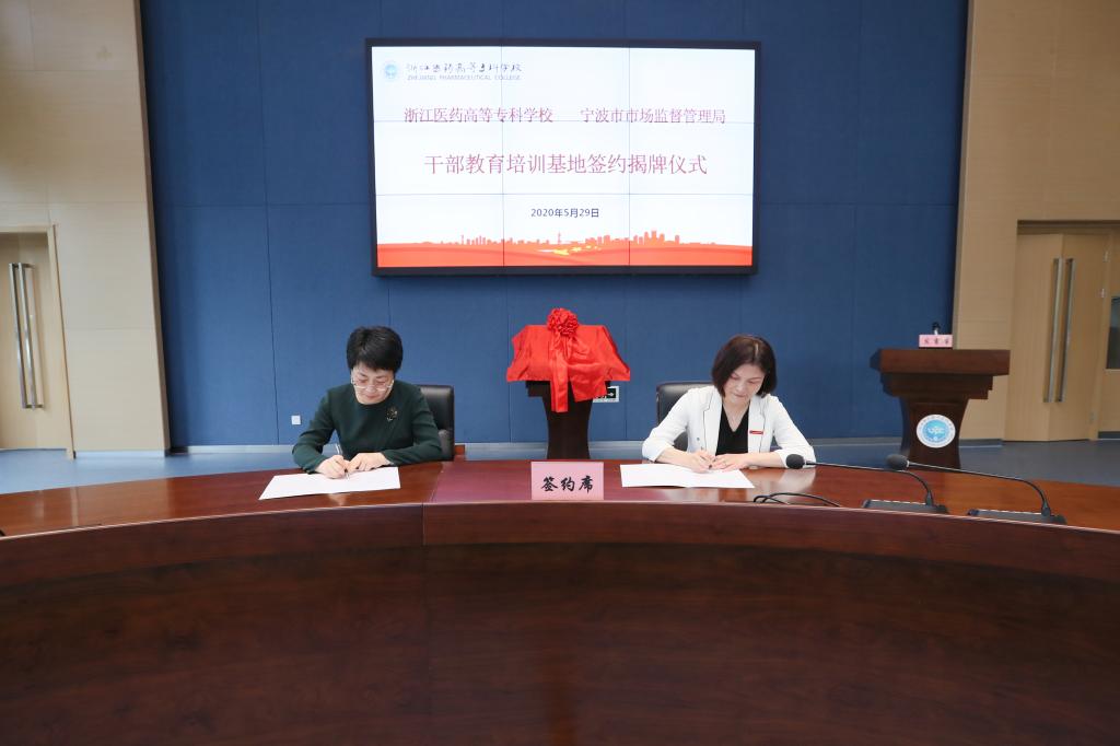 会上,任文霞与金珊分别代表合作双方签署了《宁波市市场监管系统干部综合素质提升合作协议》,并为“宁波市市场监管系统干部教育培训基地”揭牌。