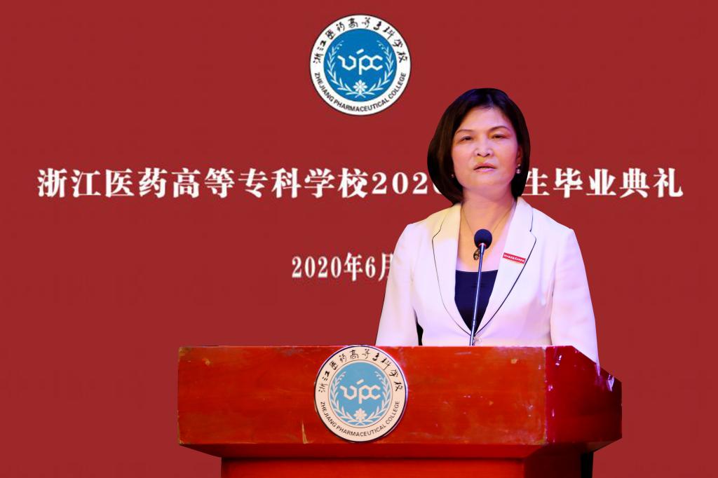 任文霞指出,三年里,同学们见证了母校为“扩校、升本、创一流”而付出的努力;见证了母校奉化新校区顺利建成,正式开启奉化、鄞州双校区运行新征程;见证了“基于产教融合的药学类人才‘三药’职业特质培养模式建立与实践”项目喜获2018年职业教育国家级教学成果奖一等奖;见证了特色原料药和制剂质量提升协同创新中心获首批省应用技术协同创新中心;见证了母校持续保持“省级文明单位”称号,获得首批宁波市“文明校园”称号;见证了母校办学实力和社会影响力不断提升。三年间,同学们不负青春与梦想,实现了从成长到成才的蜕变,书写了属于自己的华彩篇章。特别要指出的是,在过去几个月里,同学们因战“疫”的磨砺而成长,同学们以各种形式为抗击疫情贡献自己的力量,展示了beat365学子的精神风貌和责任担当。