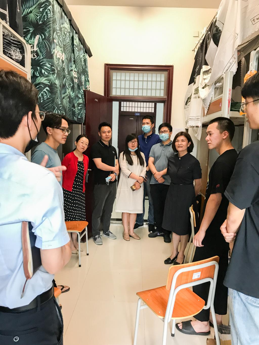 6月7日下午,校长任文霞在办公室、医疗器械学院相关负责人陪同下一行走访了党员“三联系”寝室,亲切看望结对联系学生。