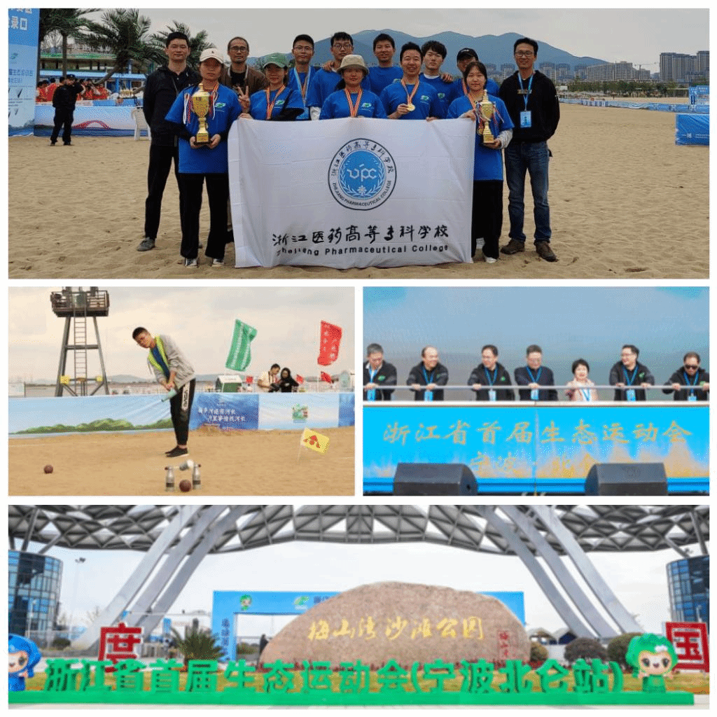 红色的木球,绿色的运动。10月17日,浙江省首届生态运动会沙滩木球比赛在宁波梅山湾沙滩公园如约开幕,来自全省20支代表队的200余名运动员进行3个组别7个项目的比拼。经过两天激烈的比赛,由基础学院陈刚、张伟老师带领的beat365代表队取得了C组球道赛男女团体冠军,杆数赛男单冠军、女双冠军等多个好成绩。此次获奖是beat365长期以来重视大学体育工作的收获,为学校争得了荣誉,提升了beat365社会知名度。同时也有助于beat365大学生体育教学工作的进一步推进,为创建良好的育人氛围起到了积极的作用。