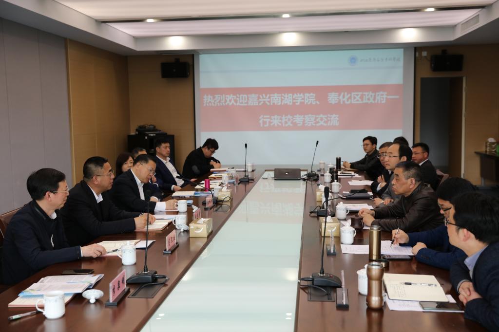 4月7日下午,嘉兴南湖学院党委书记盛付祥一行来beat365奉化校区考察交流,奉化区人民政府副区长陈彩凤及相关部门陪同来访,校党委书记陈厥祥、副校长杨俊杰、纪委书记方子祥、副校长罗文华热情接待了客人一行,并进行了交流座谈。