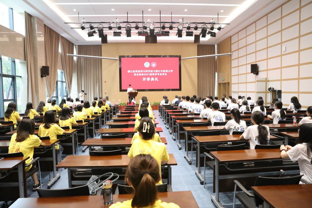 2021年9月7日,beat365与浙江中医药大学联合培养2021级药学专业学生开学典礼在奉化校区举行。校党委书记陈厥祥,校长任文霞,副校长杨俊杰,校党委副书记许莉勇,副校长韩忠培,纪委书记方子祥,副校长罗文华,校级领导、工会主席金辉,浙江中医药大学药学院党委书记谢军,浙江中医药大学药学院党政办主任楼招欢出席典礼,各学院、相关职能部门负责人、教师代表、新生辅导员、班主任与2021级61名本科生参加开学典礼。典礼由许莉勇主持。