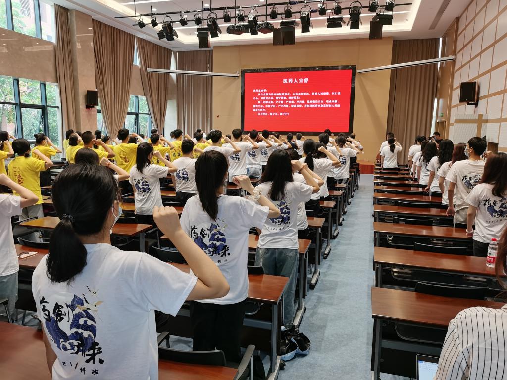 典礼开始,由学生代表发言并进行医药人宣誓仪式,全体与会师生举起右手,庄严宣誓:“我立志献身崇高的医药事业,心怀祖国重托……”誓词铿锵有力、信念坚定,誓为人民健康和祖国医药事业不懈奋斗。谢军代表浙江中医药大学向2021级本科班学生介绍了学校的基本情况、办学理念和人才培养模式,对于即将开启新的大学生活的同学们提出了殷切希望。