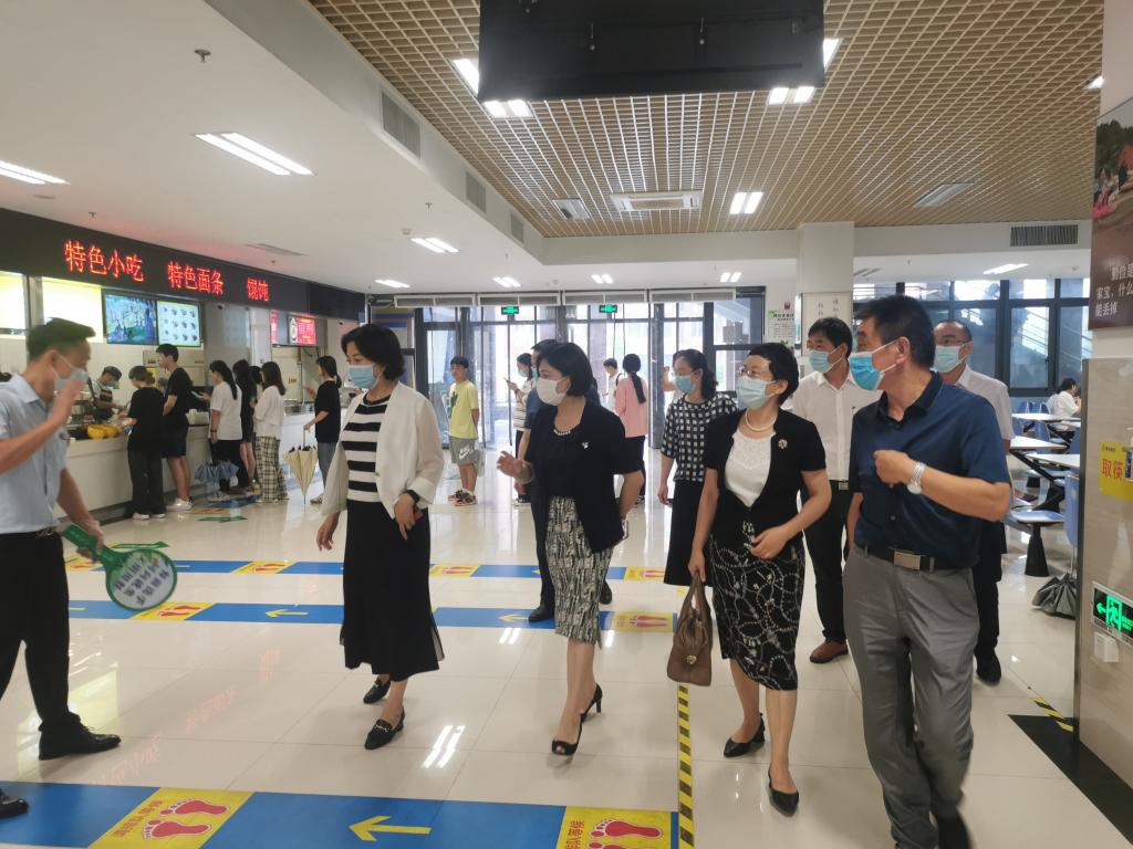 随后,检查组深入学校食堂、图信中心、校门口等地进行了实地检查。