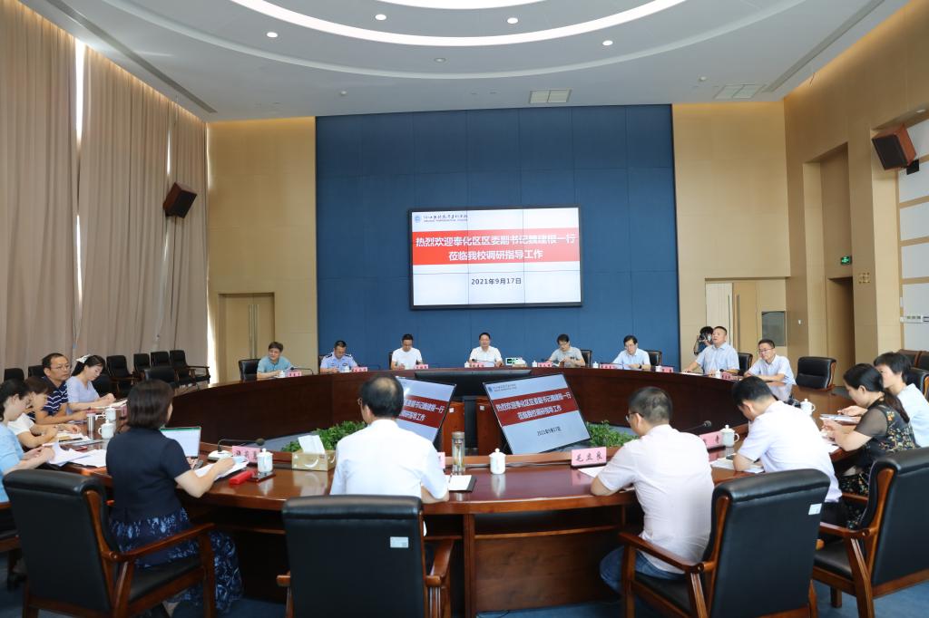 9月17日下午,奉化区委副书记、政法委书记魏建根率区委政法委常务副书记袁义琛,区委统战部副部长、民宗局局长范银军,区教育局局长周永龙,区公安分局副局长竺永芳,区委办办公会议成员李泉,区委办副科长裘立学等一行来校调研。校党委书记陈厥祥、党委副书记许莉勇以及办公室、学生处、校安处、相关学院负责人和辅导员代表参加了调研座谈会。