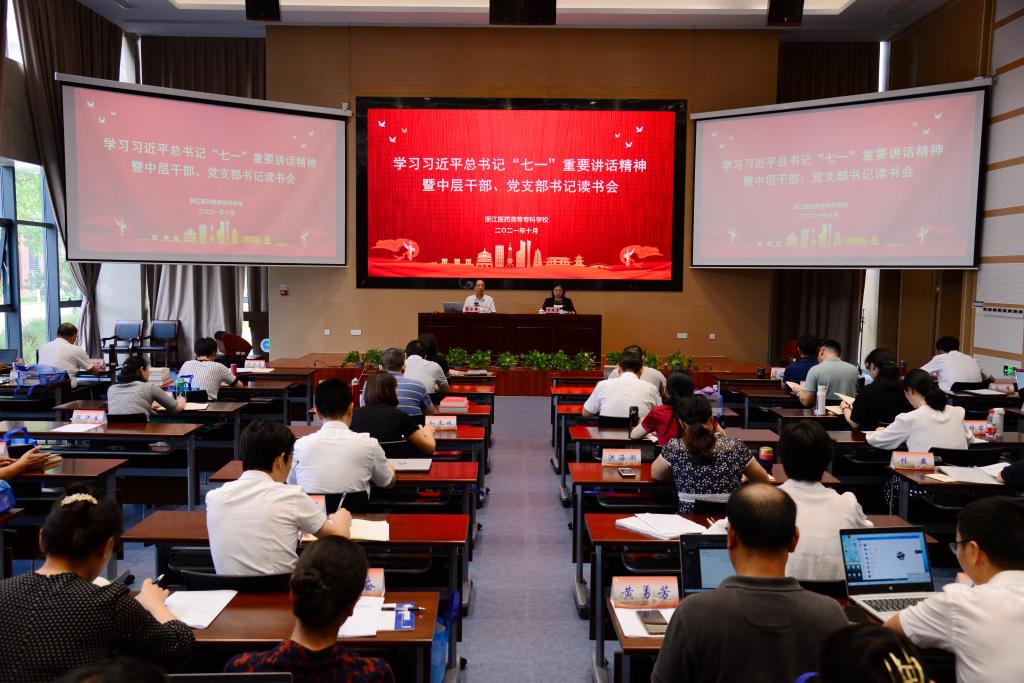 10月9日至10日,学校举办学习习近平总书记“七一”重要讲话精神暨中层干部、党支部书记读书会。校党委书记陈厥祥,校长、党委副书记任文霞,副校长杨俊杰,党委副书记许莉勇,副校长韩忠培,纪委书记方子祥,副校长罗文华,校级领导、工会主席金辉出席会议,全体中层干部、党总支书记、副书记、党支部书记参加会议。会议由许莉勇主持。