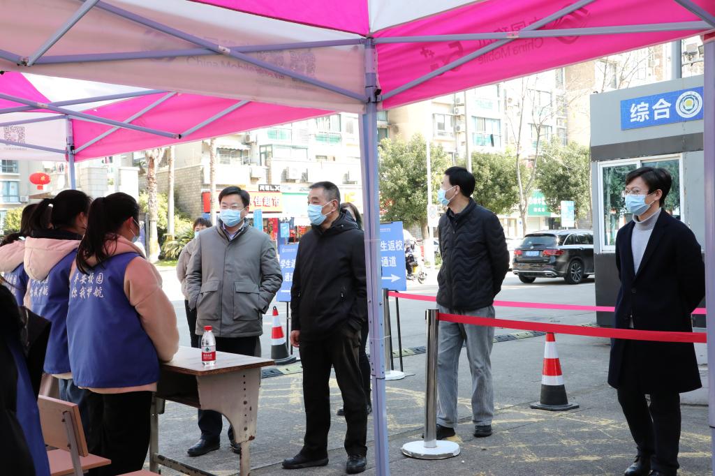 2月25-26日,校长娄小娥,党委副书记杨俊杰,纪委书记徐军伟,副校长许莉勇、沈忠华、沈黎新,党委委员韩忠培、张佳佳分别来到学校奉化和鄞州校区报到现场,检查开学报到各项工作,了解疫情防控各项措施落实情况,并要求相关部门不断完善保障措施,确保圆满完成报到工作。办公室、学生处、校安处、总务处、后勤等相关部门负责人陪同检查。