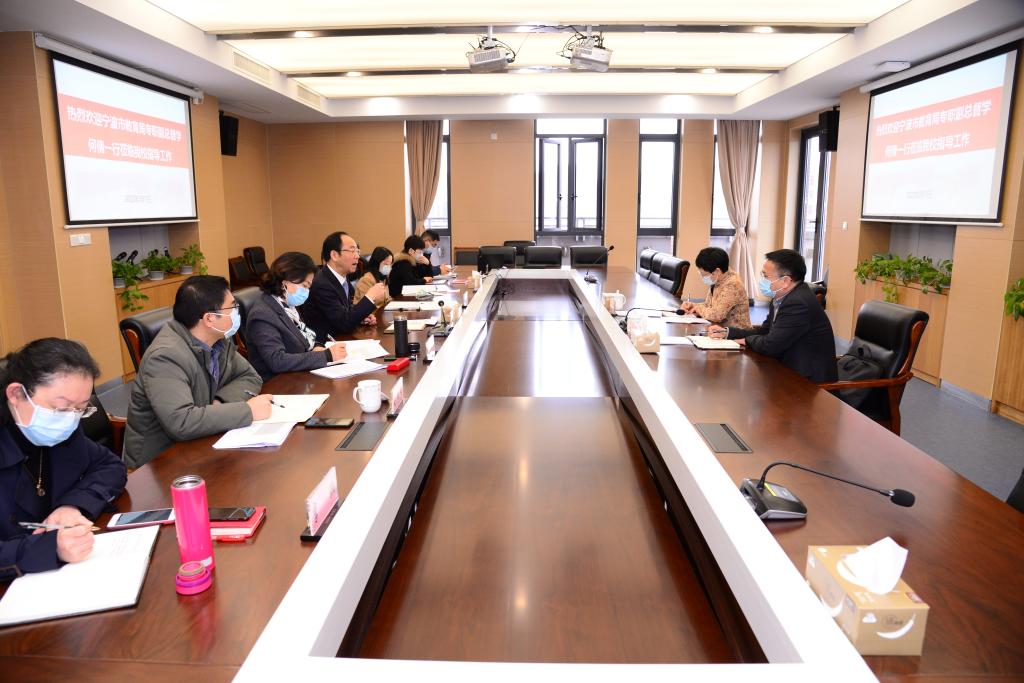 3月1日上午,宁波市教育局专职副总督学何倩、职教处处长钱文君一行来beat365检查春季开学初及校园安全等相关工作。党委书记陈厥祥、党委副书记杨俊杰、副校长许莉勇出席会议,办公室、学生处、教务处、校安处、总务处等相关部门负责人参会。