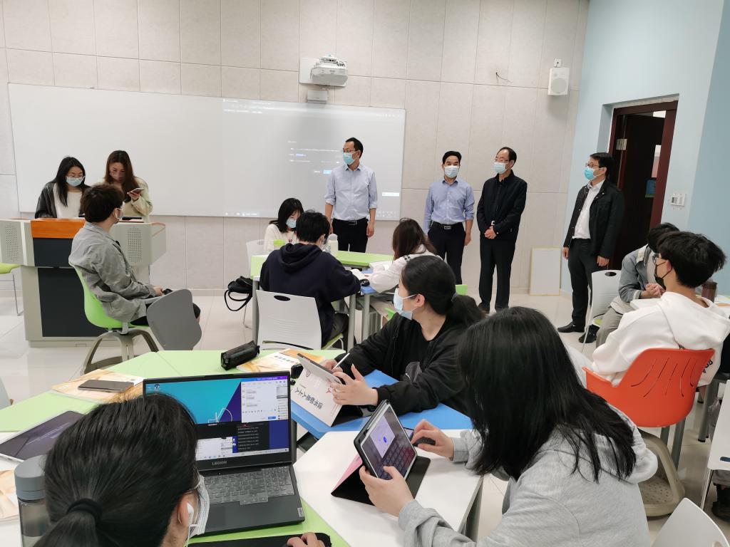 4月11日,线上教学模式开展第一天,校党委书记陈厥祥,教务处、图书与信息中心及各学院领导班子下课堂深入了解线上教学开展情况与学生学习情况。8时许,学生们佩戴口罩陆续走进教室,从容有序做好上课准备,提前进入任课教师建立的钉钉、腾讯会议等直播平台并保持安全距离就坐,上课期间网络顺畅,学生认真听课、记录课堂笔记,与教师互动良好。任课教师都能做到上课资料齐全,准备充分,上课流畅,师生互动活跃,课堂秩序井然。陈厥祥逐一走访所有网络授课教室后叮嘱相关部门负责人:要提高政治站位,各部门要高度重视做好疫情防控特殊阶段的教学管理工作;要坚持以人为本,教务处要精准把握教学规律和学情实际,精心组织实施好线上教学工作;要做好服务保障,图书与信息中心要做好线上教学的信息服务和硬件支撑,总务处对教室等教学场所要做好防疫消杀工作;要落实协同育人,各学院要落实教学管理主体责任,教学质量管理中心要对线上教学进行检查、督导,确保教学质量始终“在线”。