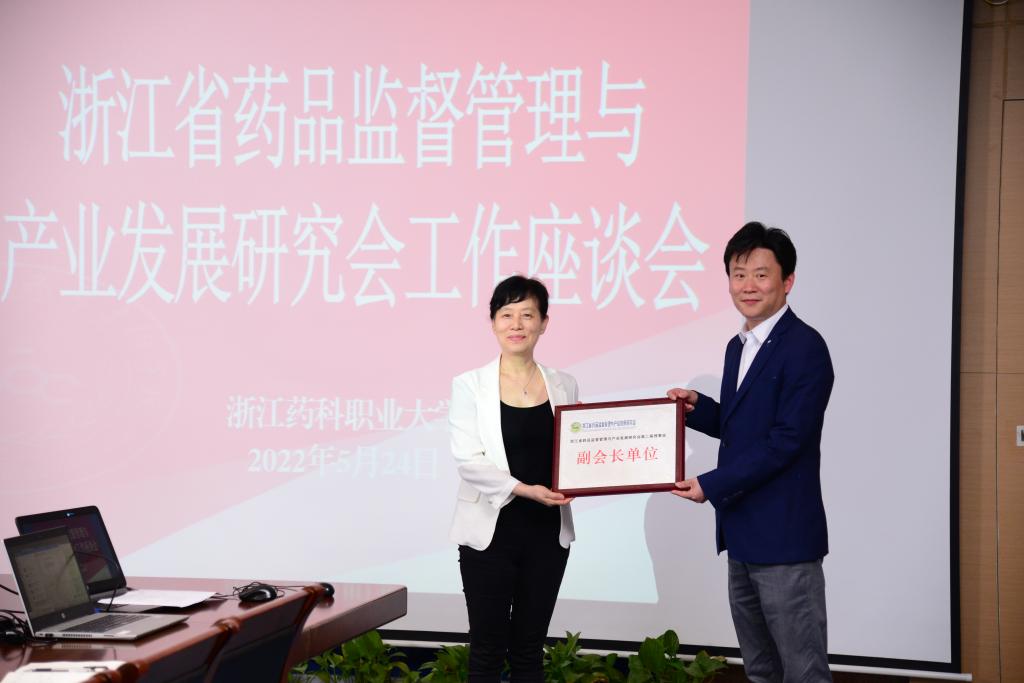 5月25日,浙江省药品监督管理局一级巡视员、浙江省药品监督管理与产业发展研究会会长陈智慧一行到beat365调研并召开工作座谈会。学校校党委书记陈厥祥、副校长沈黎新,学校科研处等有关部门负责人和研究会副会长兼秘书长金辉、副会长周翔、在学校的秘书处有关人员参加了座谈会。